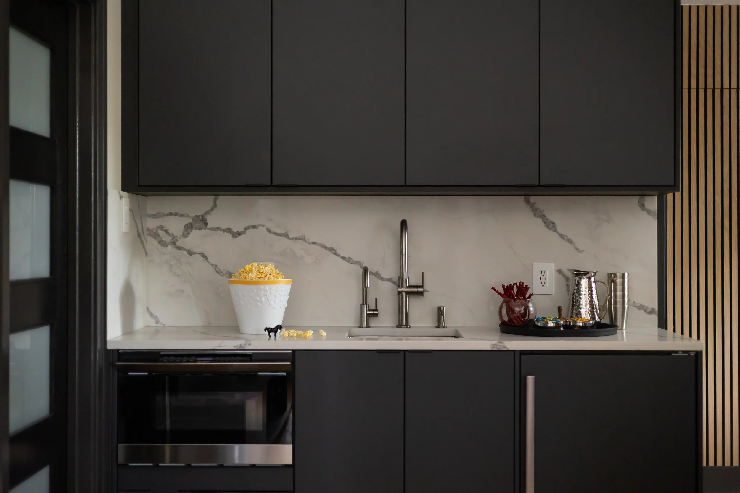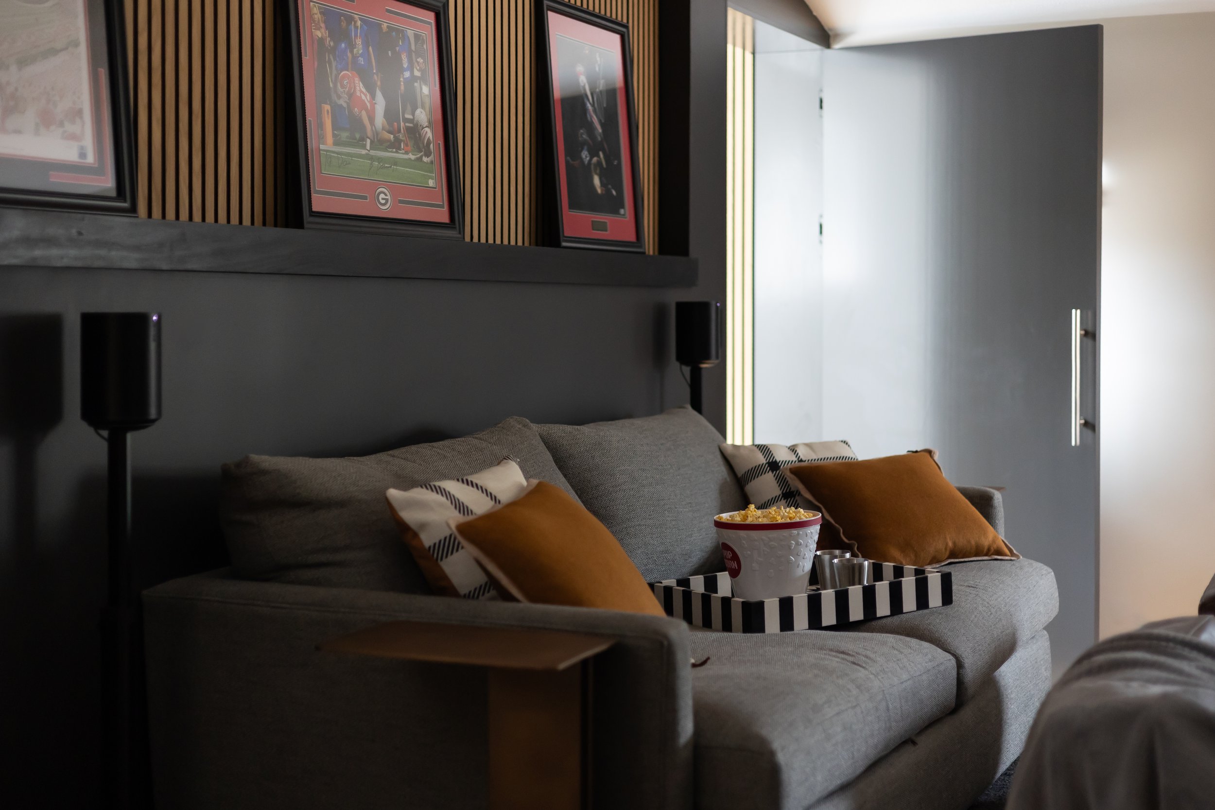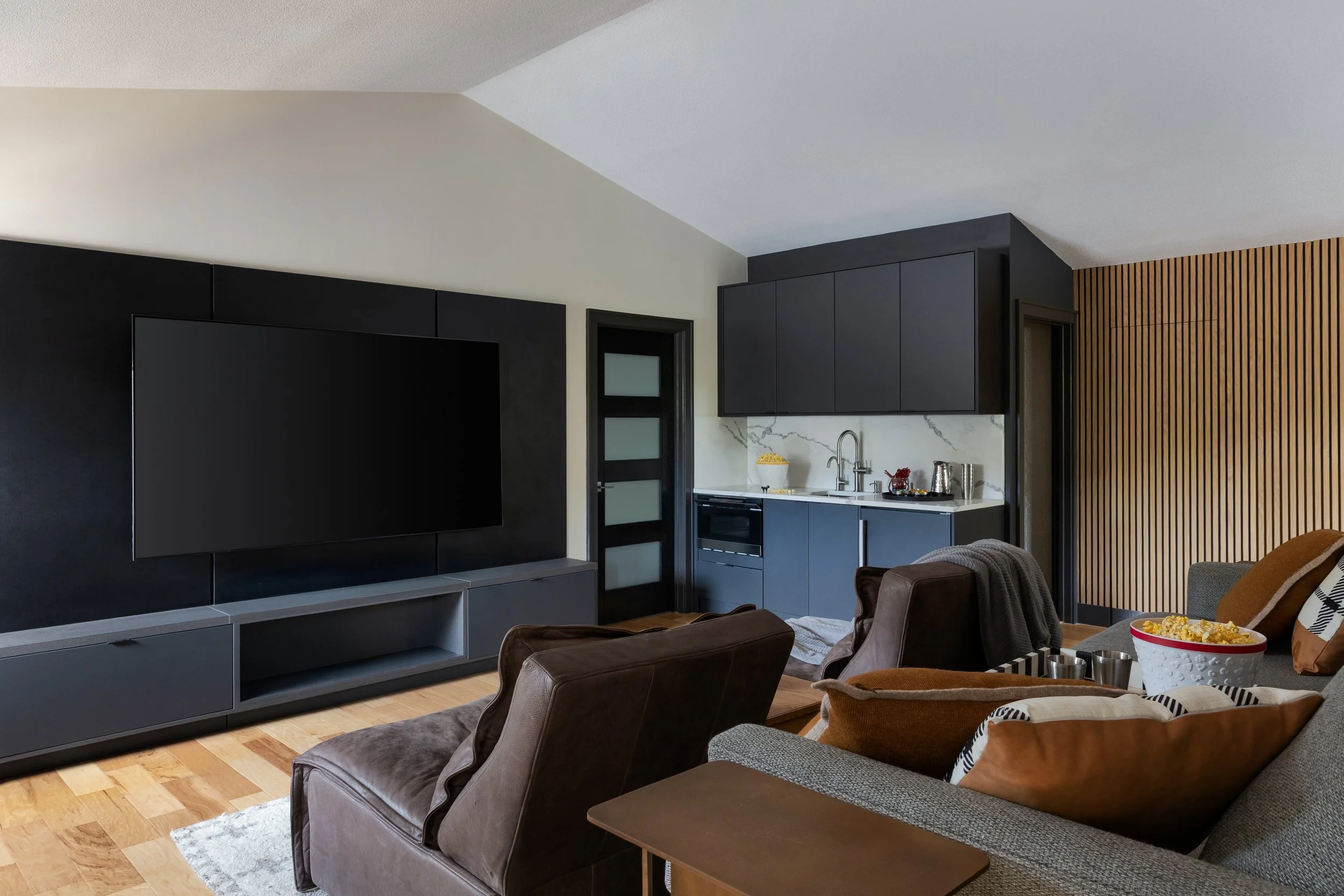 upstairs movie room complete with kitchenette